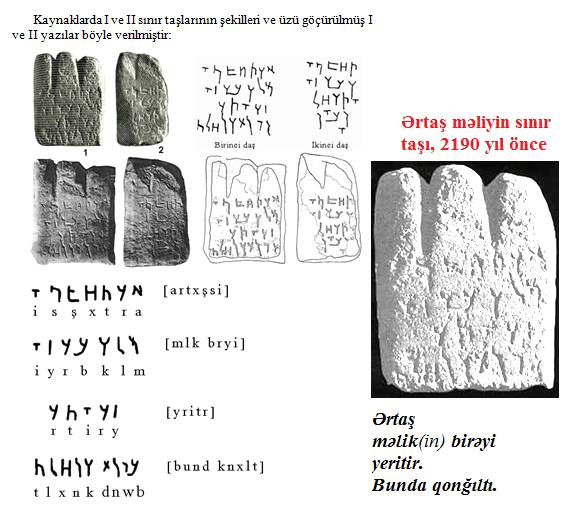 Anadolu’nun güney-doğu bölgelerinde ve Azerbaycan’da hıristiyanlığı kabul eden Kıpçak Boylarına da “Ermeni”, “Alban” demişler ve Türk kökenli bu “Ermenilerden” Türkçe bir çok yazılı belge vardır. Urartu bölgesinde ve Saka döneminde Proto-Azer (Türk) kavimlerinin yaşadığı bilinmektedir. Artaşes zamanında (MÖ 2. yüzyıl) burada Azeriler yaşıyordu. İlk Ermeni devletinin kurulduğu dönemde başka etnik grupların da bu bölgeye sızdığına şüphe yoktur ancak söz konusu yazıt yerel yerlilerin Azeri dilinde … Okumaya devam et Ermeniye hükümdarı Artaşes’in (Artaş’ın/Artaxias I) Türkçe Yazıtları: MÖ.2.yy