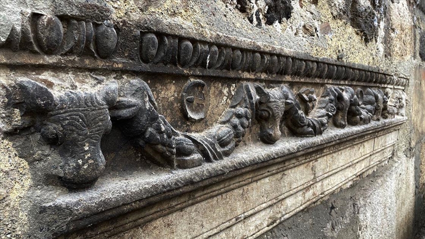 Sinop’ta, 2 bin 500 yıllık boğa başı figürlü kırlent (çiçek veya yaprak işlemeli süs), tarihi surlar önündeki binaların yıkılmasıyla gün yüzüne çıktı.