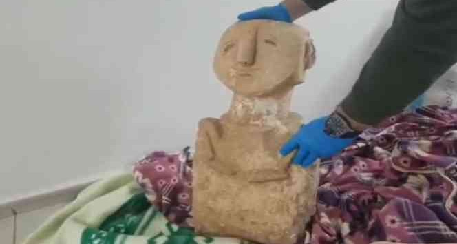 İzmir’in Bornova ilçesinde bir şüpheli şahsın çantasından 11 bin 500 yıl öncesine ait olduğu belirlenen insan tasvirli heykel ele geçirildi.
