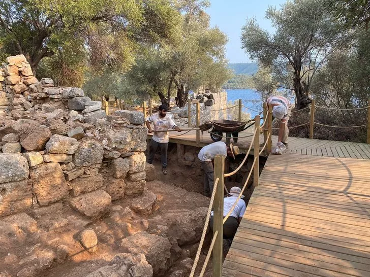 Muğla Valisi Orhan Tavlı, Gökova Körfezi’nde bulunan koruma altındaki Sedir Adası ve Kedrai Antik Kenti’nde yürütülen kazı çalışmalarında incelemelerde bulundu.