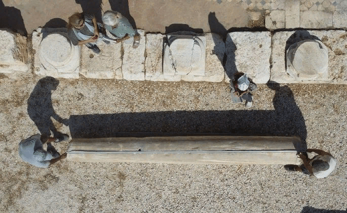 Türk ve İtalyan arkeologlar Elaiussa Sebaste Antik Kenti’nde 2 bin 200 yıl önce bazilika olarak kullanılan büyük hamamın hem geleceğe aktarılması hem de ziyaretçilere fikir vermesi için 4 metrelik tonlarca ağırlığındaki sütunların yeniden ayağa kaldırılmasına yönelik çalışma başlattı.