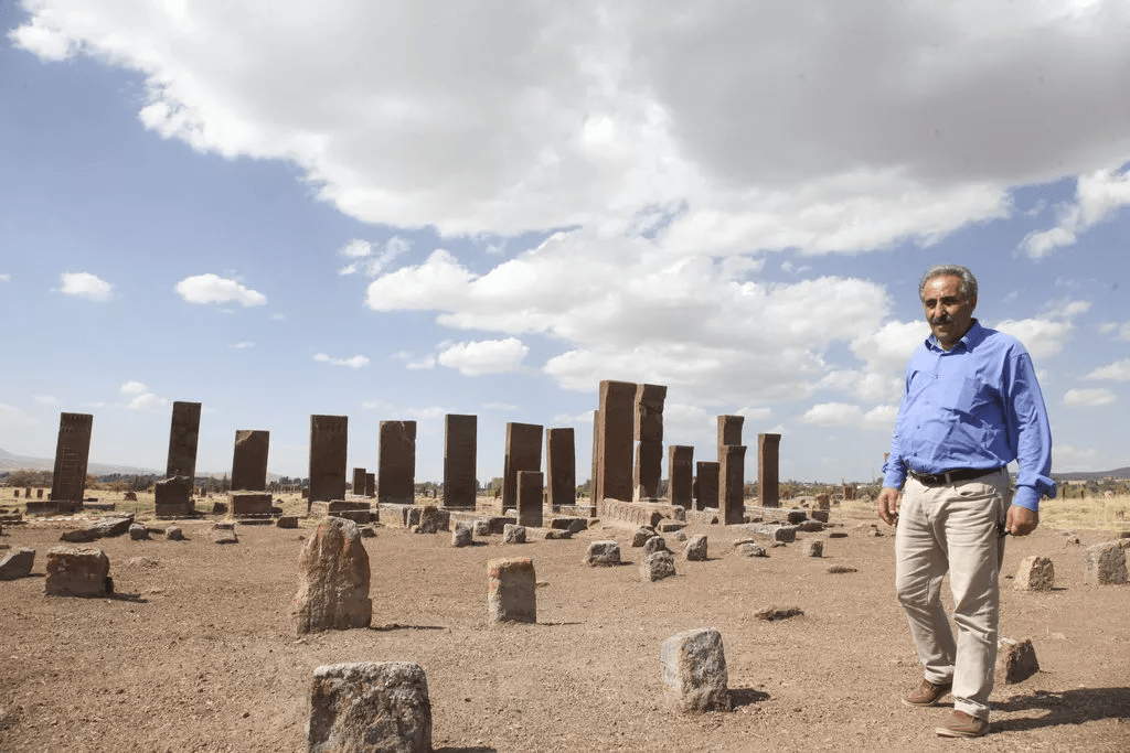 “2022 yılında hem halkın beklentileri hem de tarihi kaynaklardaki verileri dikkate alarak Kültür Bakanlığından Türk büyüklerinin Ahlat’taki mezarlarını bulmaya yönelik bir yüzey araştırması talebinde bulunduk. Gelen izin doğrultusunda da çalışma gerçekleştirdik. Oluşturduğumuz ekiple Kayı, Selçuklu Meydan, Kırklar mezarlıkları ile Hasan Padişah (Hasan Aka) Kümbeti ve etrafındaki mezarlıklar, Çifte Hamam etrafındaki mezarlıklar başta olmak üzere Ahlat’taki tüm mezarlıklarda ekibimizle birlikte çalışma gerçekleştirdik. Bu çalışmaya ek olarak bir de tarihi kaynakları inceleme fırsatı bulduk. Hasan Bin Mahmut El Bayati, Yazıcıoğlu Ali ve Evliya Çelebi, Kaya Alp’in mezarının Ahlat’ta olduğu konusunda hemfikirler. Biz de buna yönelik bir çalışma başlattık. Bunun dışında aynı şekilde Ahlatşahların kurucusu Sökmen El Kutbi’nin Kuzey Suriye seferi sırasında şehit düştüğü ve naaşının da Ahlat’a getirilerek defnedildiği yazılı. Buna yönelik çalışmamız da oldu. Hem 1230 yılında Ahlat’ta vefat ettiği kayıtlarda geçen Kaya Alp hem de 1111’de vefat ettiği anlaşılan Sökmen El Kutbi’nin mezarlarına dair bir veri elimize geçmedi. Bunların dışında diğer Türk Büyüklerinin mezarlarını da bulmaya yönelik çalışma yaptık ancak şimdilik elimizde bir veri yok. Belki kazı ve sondaj çalışmalarından sonra eğer toprak altındaysa bulunma ihtimali var.”