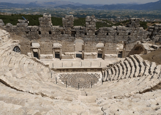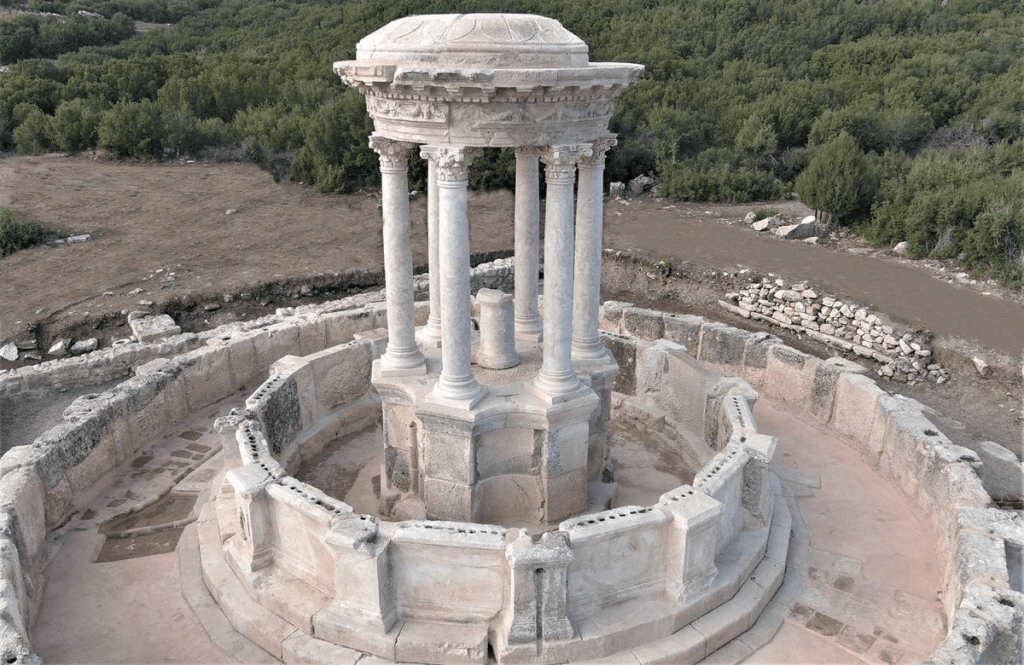 As you progress, you can see the basilica, upper and lower agora, bathhouse, gymnasium, theater and parliament building, as well as the planned mausoleum, bathhouse, round tower tak and waterways. The parliament building / music house is one of the most magnificent monuments of Ancient Anatolia with a capacity of 3 thousand 600 people. The Medusa Mosaic, made of red, green and white marble, located right in the center of the parliament building/ orchestra, is unique in Anatolia with its hair made of snakes and its gaze that turns people to stone.