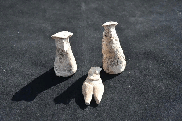 Bu yılki kazılarda ilginç figürler bulduklarını belirten Prof. Dr. Çevik, “Genelde araziden elleri ile göğsünü tutan, iri kalçalı kadın figürleri karşımıza çıkıyordu. Bu yılki kazılarda ilginç figürler bulduk. 2 figürünün çift olduğunu düşünüyoruz, aynı kostümü giymişler. Şapkaları var ve burunları sivri. Kadın olanın ise kucağında bebek taşıyor şekilde betimlendiğini görüyoruz. Bu figürlerin Balkanlar’da çok daha geç dönemlerde benzerleri görülüyor. Ulucak özelinde veya Anadolu’da pek bilinen eserler değil. Daha ziyade Balkanlar’da görülüyor. Figürler, pişmiş topraktan, kil malzemeden yapılmış ve günümüzden 7 bin 700 yıl öncesine ait eserler” diye konuştu.