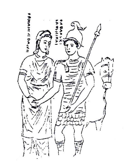 Hiç uzatmadan konuya gireceğim. Aşağıdaki bir Etrüsk resminde genç bir kadının askerle vedalaşması tasvir ediliyor. Askerin arkasında dayanmış at, kadının yüzündeki gam, askerin onun elini tutması üzücü ayrılığın yaşandığını belirtiyor.
