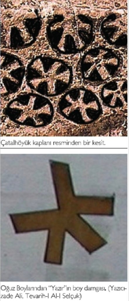 Genetik raporların arkeolojik kanıtlarla nasıl çeliştiğini göstermek üzere, Çatal Hüyük’te bulunan 10.000 yıl önce taşa yapılmış bir pars resminde, Oğuzların Yazır boyuna ait damgaya benzer desenlerin bulunmuştur.