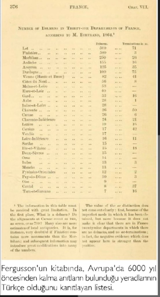 “Dolmen inşa eden ırk, ya da diğer bir deyimle, damarlarında Turan kanı karışan bir ırk, dünyanın en uzak köşelerine egemen olmayı sürdürdü; 8. ve 9. yüzyıllarda İngiltere ve Fransa’ya, 11. ve 12. yüzyıllarda İskandinavya’ya egemen oldu.” (a.g.e-sf.507)